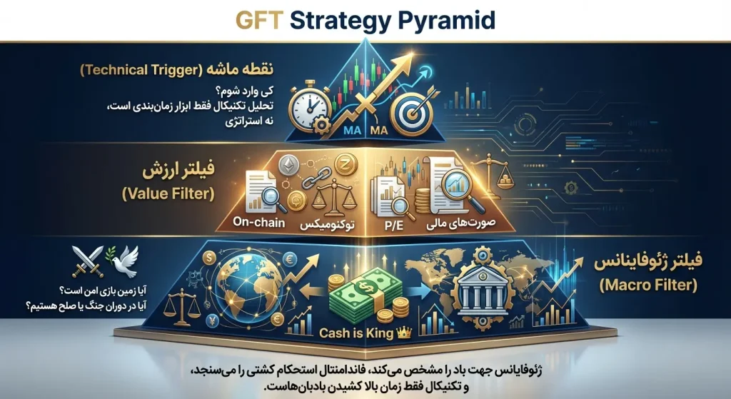 پاسخ در تغییر “اولویتها” است. ما در عصر جدید به یک چارچوب سختگیرانه نیاز داریم که مانع از ورودهای احساسی شود. من این چارچوب را «هرم تحلیل GFT» مخفف